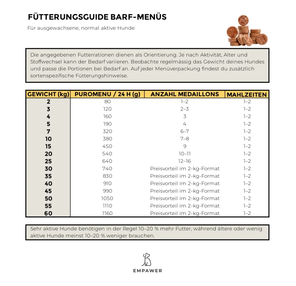 Ja. Unsere Menüs machen deinen Alltag einfacher: Die tiefgekühlten Menüs sind als Patties vorportioniert – du taust nur die Menge im Kühlschrank auf, die du brauchst, und servierst sie direkt. Die sanft gegarten Nassfutter-Menüs öffnest du einfach und gibst sie in den Napf.